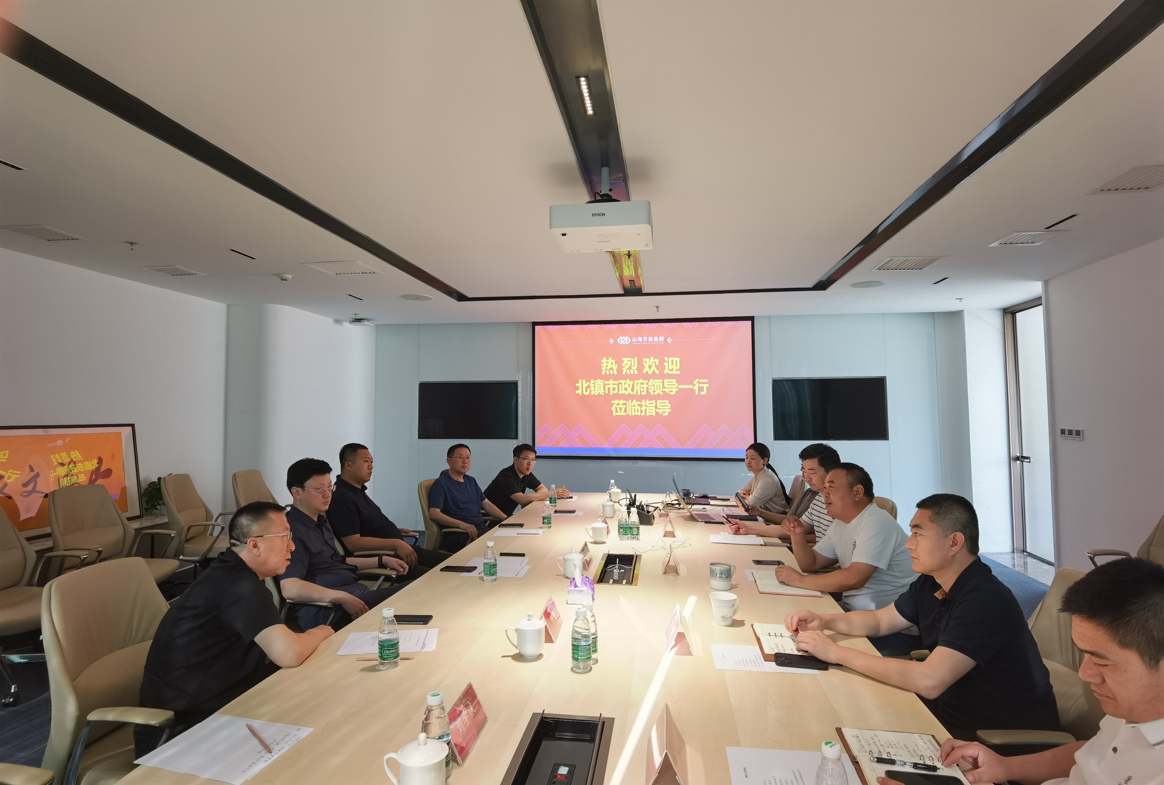 6月7日,辽宁锦州北镇市市长谢雷一行到访山海文旅集团,与集团董事长王高超等就北镇市文旅项目进行了沟通洽谈。