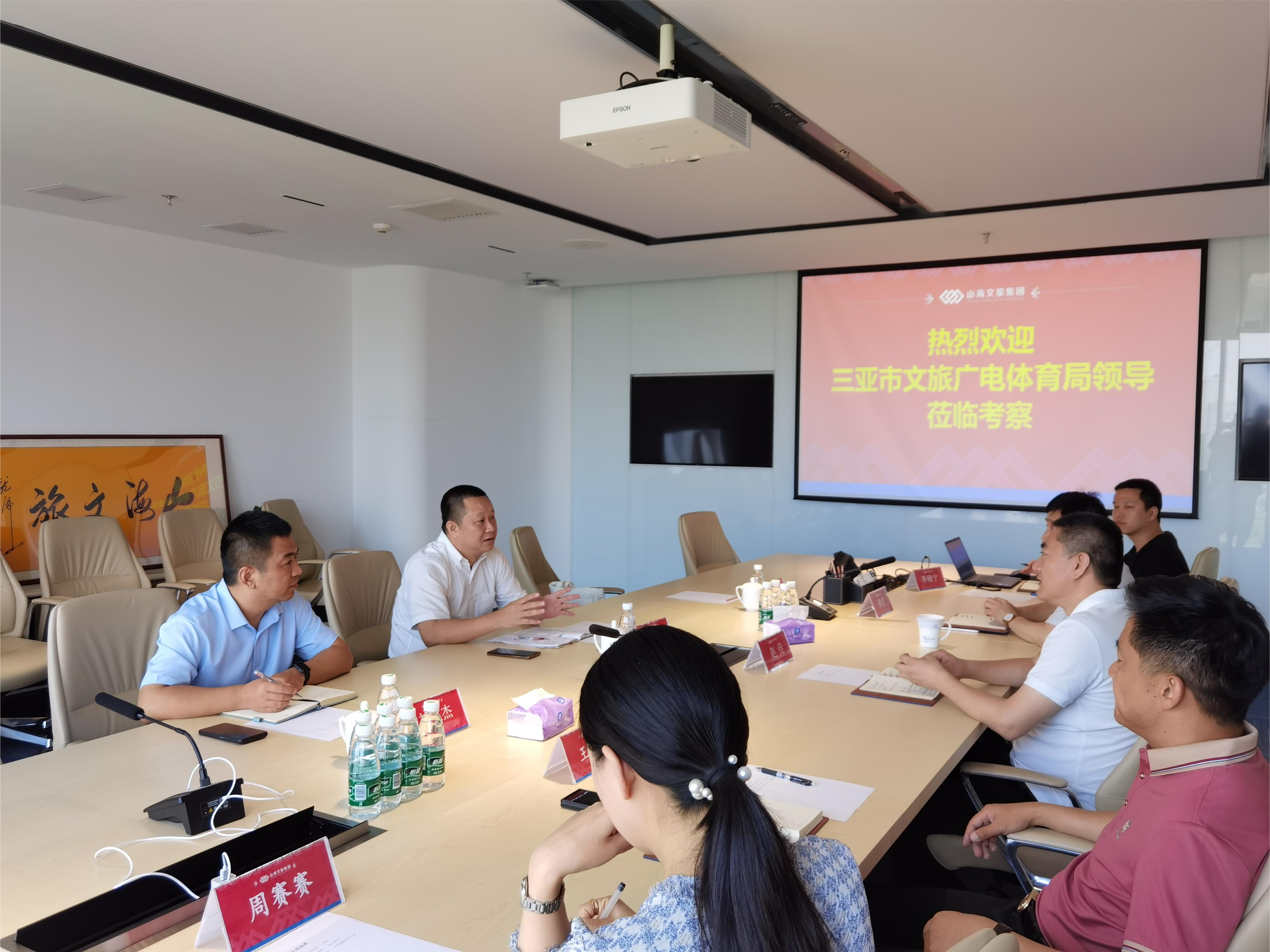 6月14日上午,三亚市旅游和文化广电体育局局党组书记、局长陈震旻一行到访山海文旅集团,与集团总裁赵佳就三亚市文旅项目进行了座谈交流。