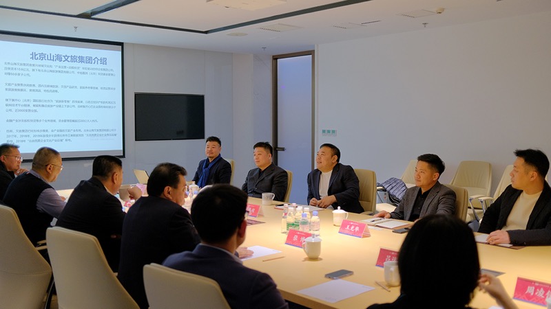 2月21日,烟台市文化和旅游局局长张祖玲、副局长张博、烟台市蓝天集团总经理刘会杰到访山海文旅集团,董事长王高超、副总裁王光华、投资运营总监张君接待来访。