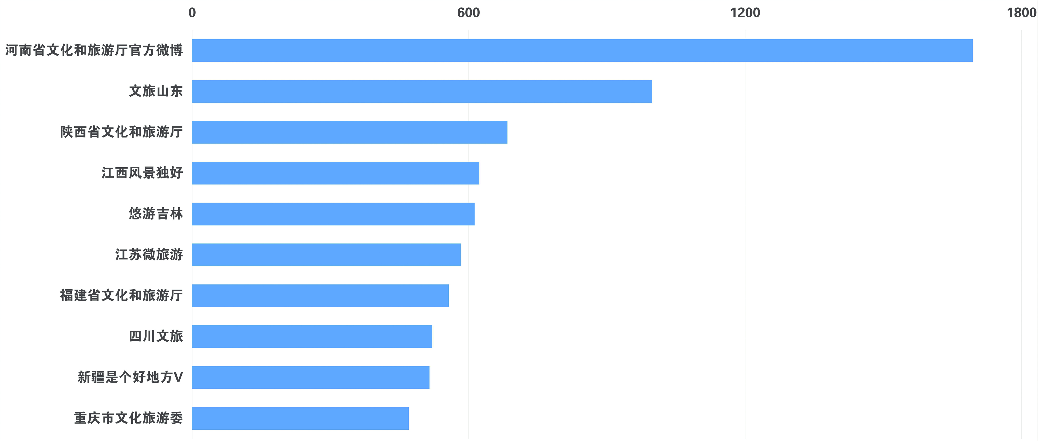 从原创微博发文数看,河南省文化和旅游厅官方微博、文旅山东、陕西省文化和旅游厅排在前列。