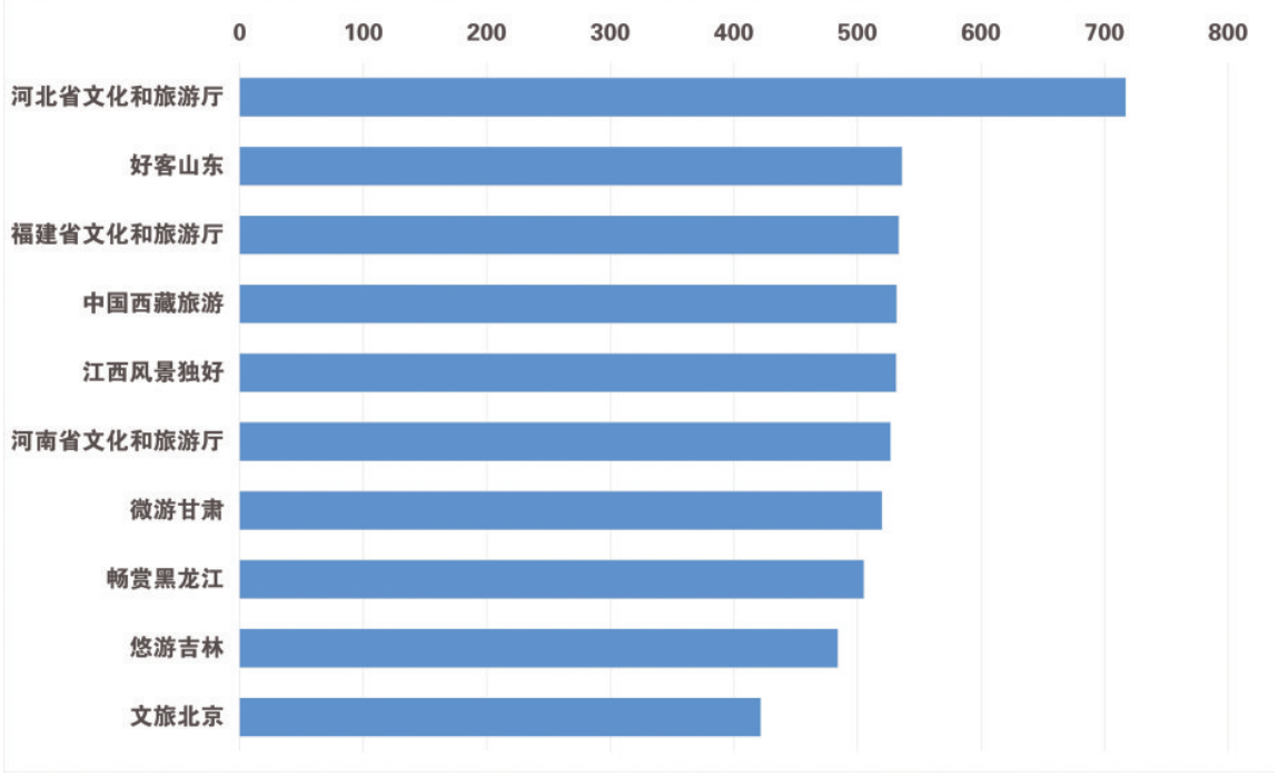 7月,省级文化和旅游行政部门头条号传播力指数排在前列的是:河北省文化和旅游厅、好客山东、福建省文化和旅游厅、中国西藏旅游、江西风景独好、河南省文化和旅游厅、微游甘肃、畅赏黑龙江、悠游吉林、文旅北京。监测时间范围内,河北省文化和旅游厅头条号共发文619篇,总阅读量85.4万次。